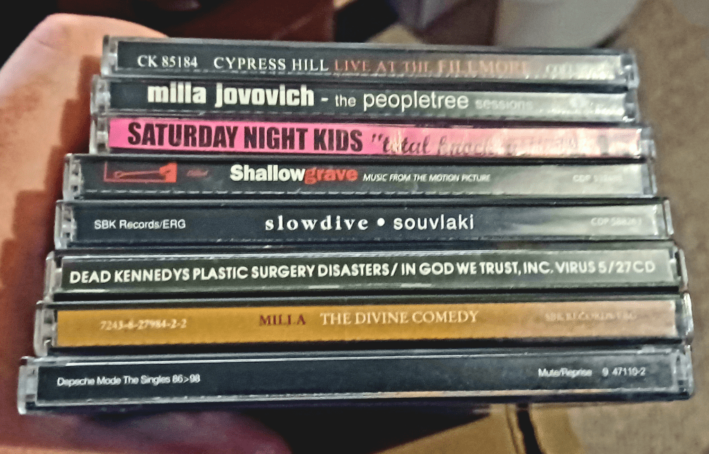 I picked up the Saturday Night Kids album based solely on its hilarious song titles. (As an aside, the Cypress Hill album was not acquired at Funky Finds…but I was too lazy to take a second photo.) (And, as another aside: Milla Jovovich is a very underrated singer.)