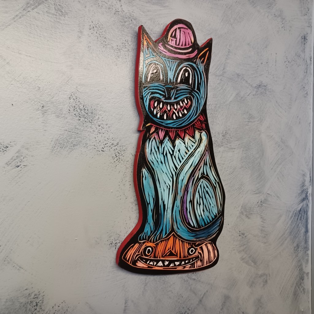 The below cat-on-pumpkin painted woodcut is from the amazing Lawrence’s Emporium out of Hellam, PA. He was also there in 2022, and I remembered complimenting his talent but ultimately not buying anything. In any case, this one-of-a-kind piece is now hanging in the office sanctum where I’m typing this post.