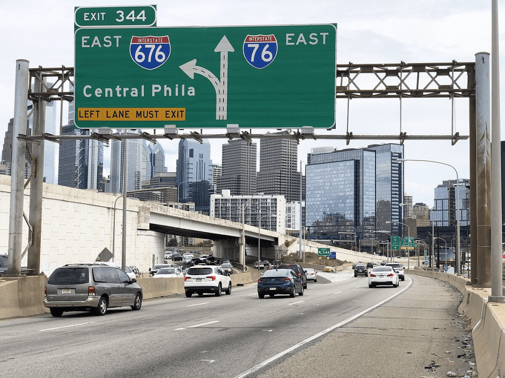 The difference in this trip was, where I-676 forked left into Center City, we forked right toward (the far end of) South Street.