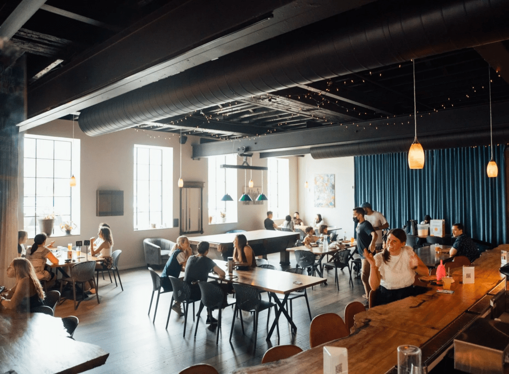 Interior of Dock House Brewing; I was seated at the spot where the bar juts out a little